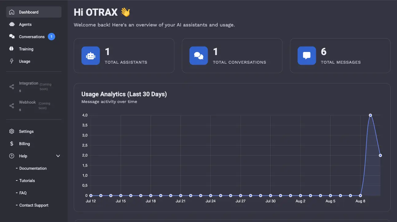 Otrax platform preview Chatbot preview